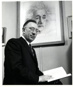 The 1939 World’s Fair opened in New York with the optimistic theme, “The World of Tomorrow.” The Fair organizers envisioned a future world of 5000 years of tomorrows, earth dwellers of 6939, who would be intrigued by the civilization of their ancestors. The Westinghouse Company took on the challenge of creating a time capsule capable of lasting 5,000 years and curating its contents. A Yeshiva College publication, Portraits of Eminent Mathematicians by David Eugene Smith, was selected to be part of this treasure, buried at the site of the World’s Fair on September 23, 1938. Portraits of Eminent Mathematicians was an offshoot of Yeshiva’s periodical, Scripta Mathematica. Scripta Mathematica was the brainchild of Yeshiva College mathematics professor Jekuthiel Ginsburg, editor of the quarterly from its inception in 1932 until his death in 1957. Jekuthiel Ginsburg at work.In the words of David Fleisher, professor of English at Yeshiva College, “The honor accorded these publications [Scripta] at the World’s Fair was a significant indication of the world-wide recognition which in a few short years the purposes and accomplishment of Scripta had achieved.” Portraits of Eminent Mathematicians. 1946 reprint. Portraits of Eminent Mathematicians, 1938 Portraits of Eminent MathematiciansBernard Revel, President of Yeshiva College, explained in the first issue of Scripta that “the policy of the Journal is in agreement with the ideal of ‘learning for the sake of learning’ which inspired the founders of Yeshiva College.” The initial issue also described the goal of the periodical: it